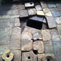Rainwater collector (foreground) and cistern (center). Atrium.
