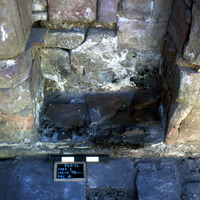 Scroll room: smaller archive area - stone shelf. Area I. Locus 14
