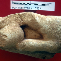 Fragment of statue, hand; sandstone - Sq. L2. Loc. 02