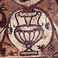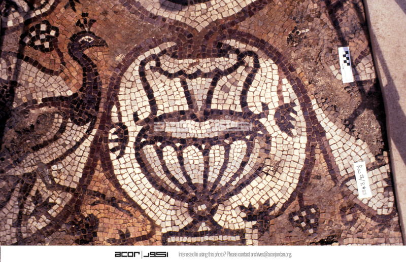 Mosaic depicting a peacock and an amphora- North Aisle