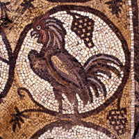 Mosaic depicting a rooster- North Aisle