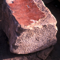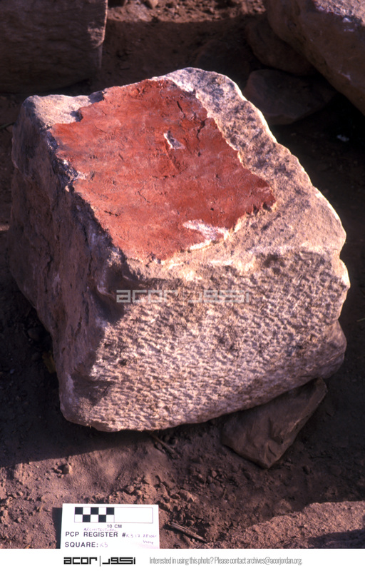 Ashlar with red paint. - Sq K3. Lapid. Locus 17/Ap106 = V104.