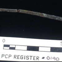 Decorated Cu alloy pin. - Sq. F2. Studio. Locus 23/Pail 56/FN1. Reg #PCP.0190