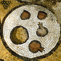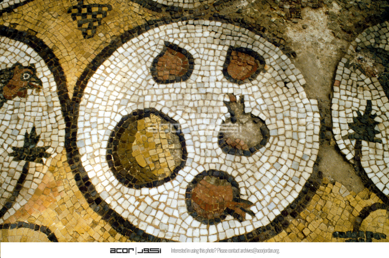 Mosaic depicting pomegranates and other fruit - North Aisle. View from above (to east).