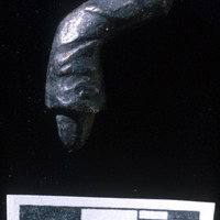Cu/Cu alloy object. Ref to CS 63 - 8 to 10. - Sq. F2. Studio. Locus 13/Pail 32/FN1. Reg PCP#.0090