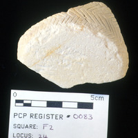 - Stone vessel frag. - Sq. F2. Studio. Locus24/Pail 61.FN3. Reg. PCP#.0083.