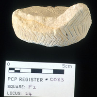 - Stone vessel frag. - Sq. F2. Studio. Locus24/Pail 61.FN3. Reg. PCP#.0083.