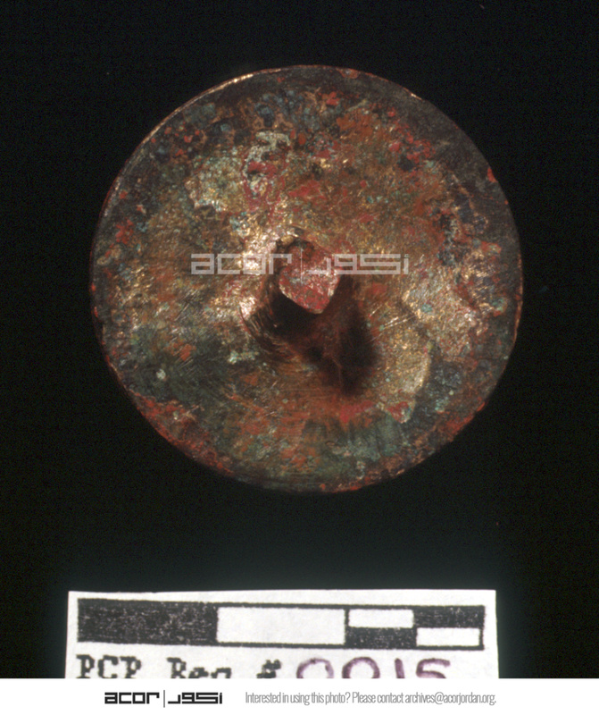 - Cu/Cu alloy pin head. Obverse view.
