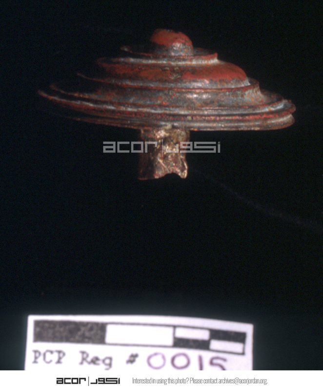 - Cu/Cu alloy pin head(?). Side view. - Sq. C1. Studio. Locus 07/Pail09. Reg PCP# .0015.