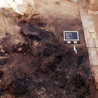 - Burnt wood. Final photo of north side of Wall A. Top view to north. - Sq. F2.