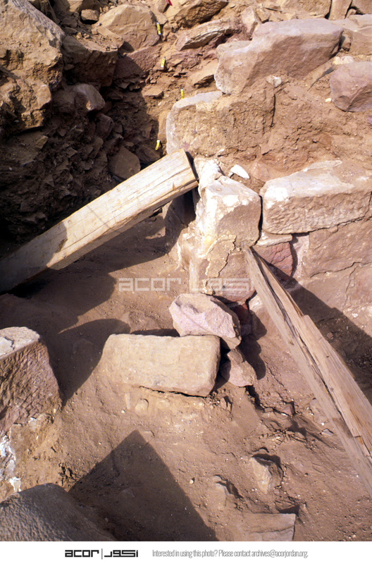 View to north-west. - Sq. H4. Loci 02(wall) & 16(door).