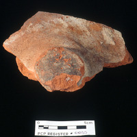 - Obverse of ceramic base plug. - Sq. B1. Studio. Locus 18/Pail 76. Reg #PCP.0055