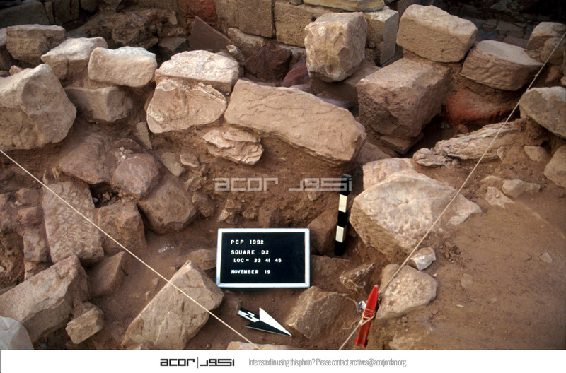 - Wall - door block. View to south-west. - Sq. D2. Loci 33, & 41.