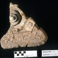 - Capital 4. Marl volute frag. - Sq. F2. Studio. Locus 28.