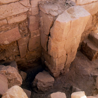 Base of arch showing pre-restoration condition. View to south-west. - Sq. G4.