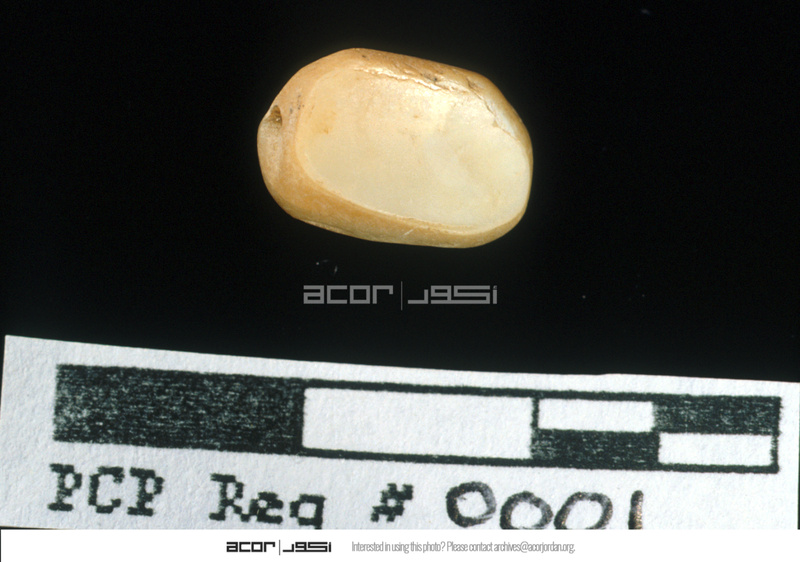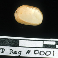 - Shell bead. Oblique view. Sq. C1. Studio. Locus 17/Pail 10. Reg #PCP.0001