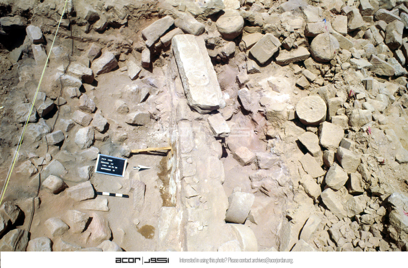 - Aerial view to west. - Sq. J3. Loci 02(wall), 04, & 06.