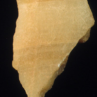 - Alabaster vessel base(fragment). Outer view. Sq. B1. Studio. Locus 13/Pail22. Reg #PCP.0004