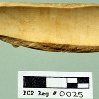 - Worked bone/ivory object. Inner view. Sq. H3. Studio. Locus 14/Pail 42. Reg #PCP.0025