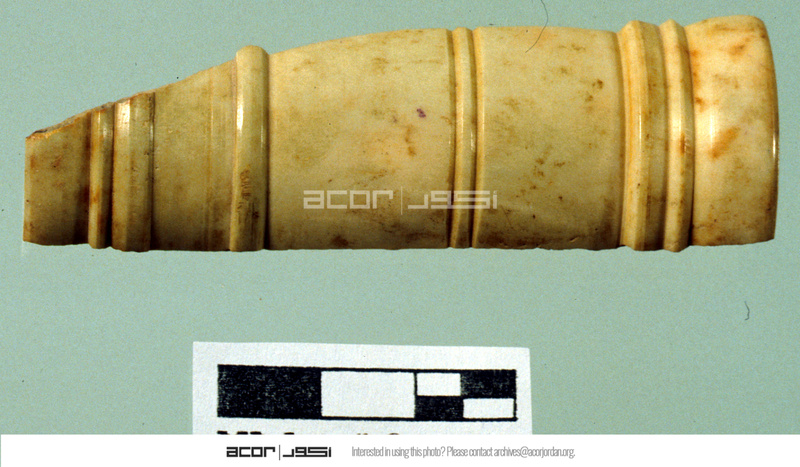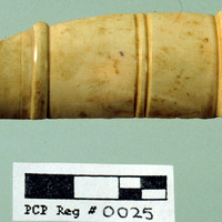 Worked bone/ivory object. Outer view. - Sq. H3. Studio. Locus 14/Pail 42. Reg #PCP.0025