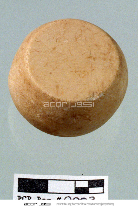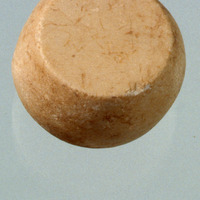 - Carved stone object. Oblique view. Sq. C1. Studio. Locus 15/Pail 22. Reg #PCP.0003.