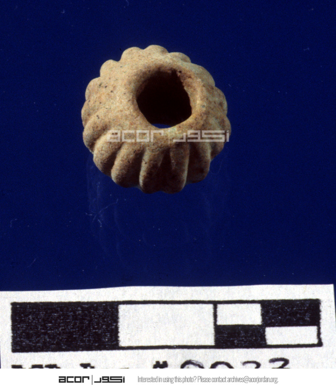Bead incised with vertical grooves. - Sq. A1. Studio. Locus 19/Pail 43. Reg #PCP.0023.
