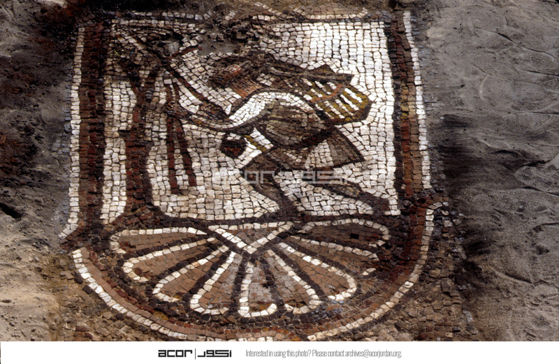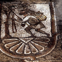 Sq. B1. Close up of mosaic depicting a fowler and his falcon for publication.