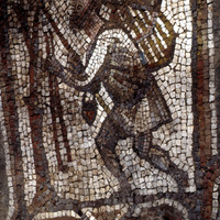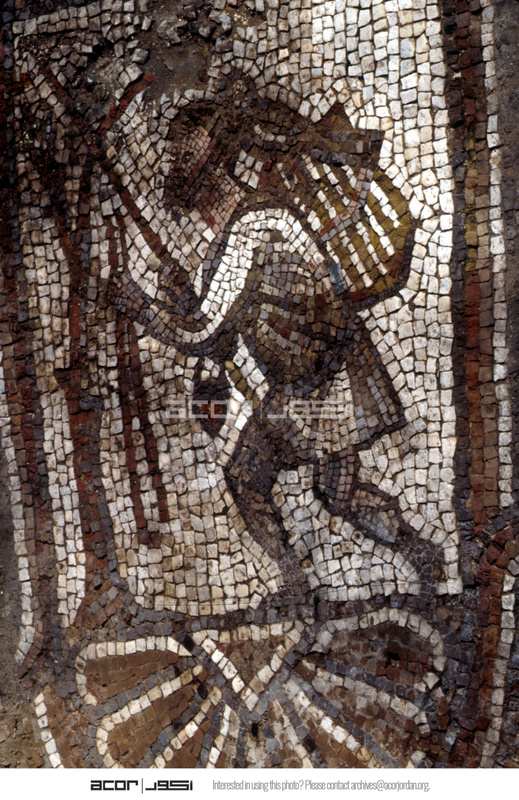 Sq. B1. Close up of mosaic depicting a fowler and his falcon for publication.