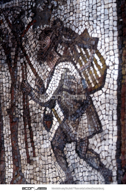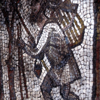 Sq. B1. Close up of mosaic depicting a fowler and his falcon for publication.