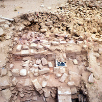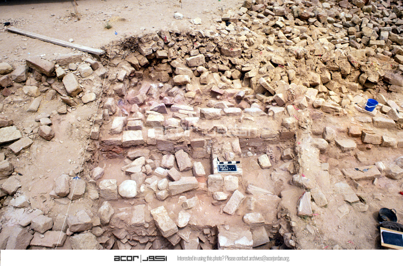 - Aerial view to north. - Sq. K3. Loci 02(wall), 03, 06(wall), 07(wall) & 08.