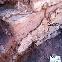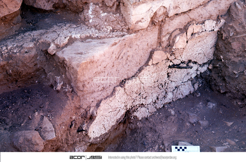 - Mortar/ Wall plaster close-up. View to south. CS only - Sq. F4. Locus 02. Wall E.