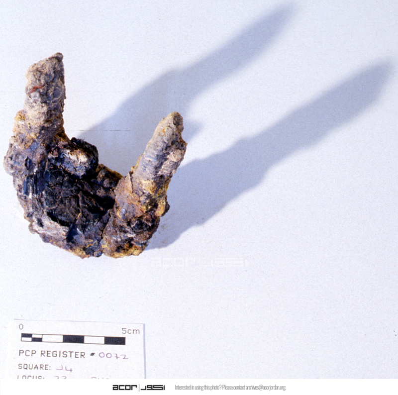 - Fragment of door hinge. - Sq. J4. Studio. Locus 23/Pail 43/FN2. Reg # PCP.0072