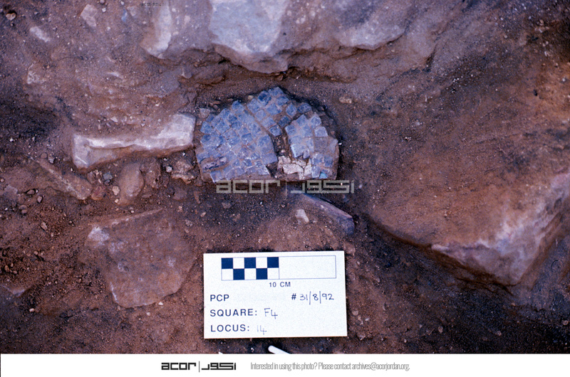 Close up of tesserae (tumble) in situ. View to west. - Sq. F4. Locus 14. FN2.