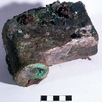 - Cu/Cu alloy door hinge. - Sq. C1. Studio. Locus 26/Pail 59/FN21 reg #PCP.0027