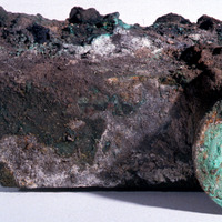 - Cu/Cu alloy door hinge. - Sq. C1. Studio. Locus 26/Pail 59/FN21 reg #PCP.0027