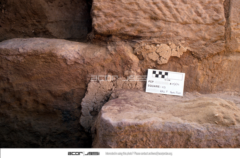 - Wall plaster. East end of square. View to south. - Sq. H3. Wall F.