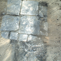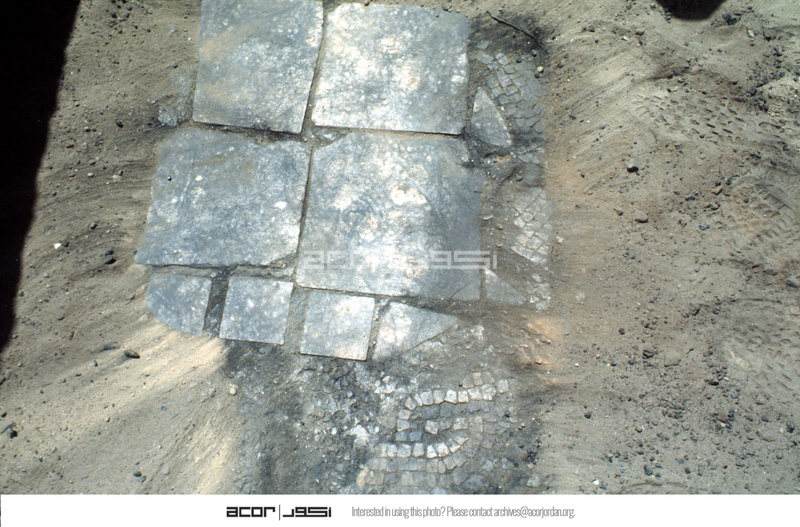 - SE corner of square. Mosaic, marble and plaster pavements. Roll 3 - - Sq. B1. Trial uncovering of mosaic pavement