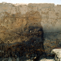 - View to south. After removal of dirt and consolidation with Primal AC33. Roll 3 - 26. - Sq. B1. Middle secion of north face of Wall A.
