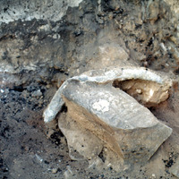View to south. Roll 3 - 17. - Sq. A1. Fallen lead pipe.