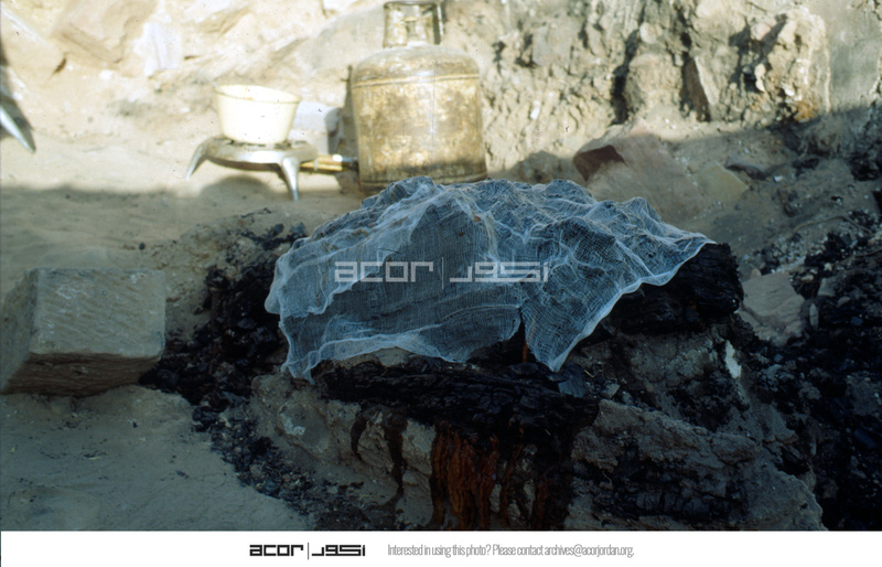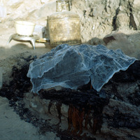 After consolidation of wooden beam with boiling bees wax and velatura with gauze and Paraloid B72 to enabble lifting. Roll 3 - - Sq. A1.