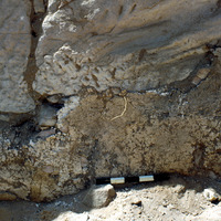 - View to south. After cleaning and before consolidation of wall plaster during excavation. Roll 2 - 28. - Sq. A1. North face of Wall A.