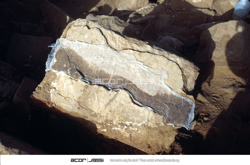 - View to west. During application of velatura prior to lifting. Roll 2 - 27. - Sq. C1. Ashler with plaster (C1.15.AP2).