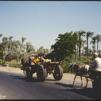 Horse and donkey pulling a wagon