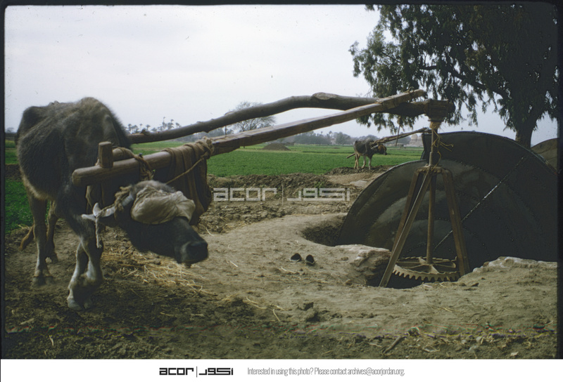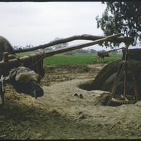 Oxen turning water wheel in the Delta