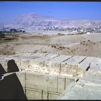 View of Gourna village and desert to Deir el Bahr near Seti I Temple