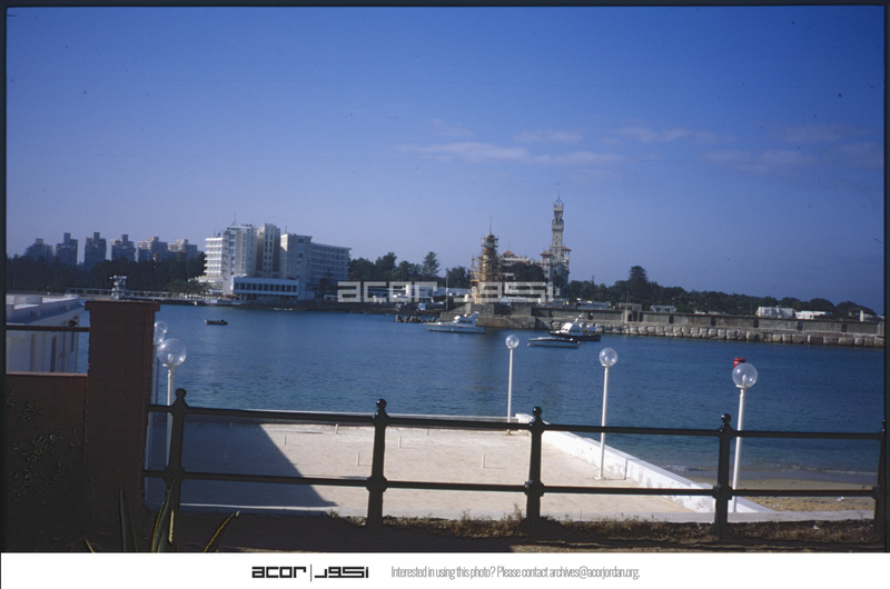 Palestine Hotel in Alexandria with palace and lighthouse