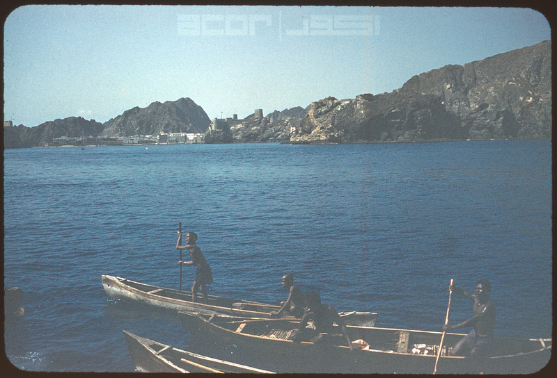 [Locals paddling with Muscat in background]