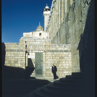Ibrahimi Mosque minaret (Haram el Khalil), built on Crusader's church; burial place trditionally of Abraham, Isaac, Rebecca, Sarah