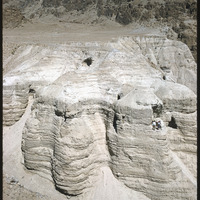 Nancy & Father McKenzie at entrance of Cave 4; view W