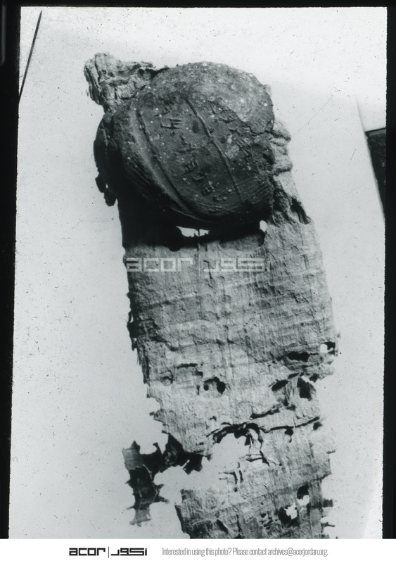 Sealing on papyrus scroll before unrolling by Frank Cross